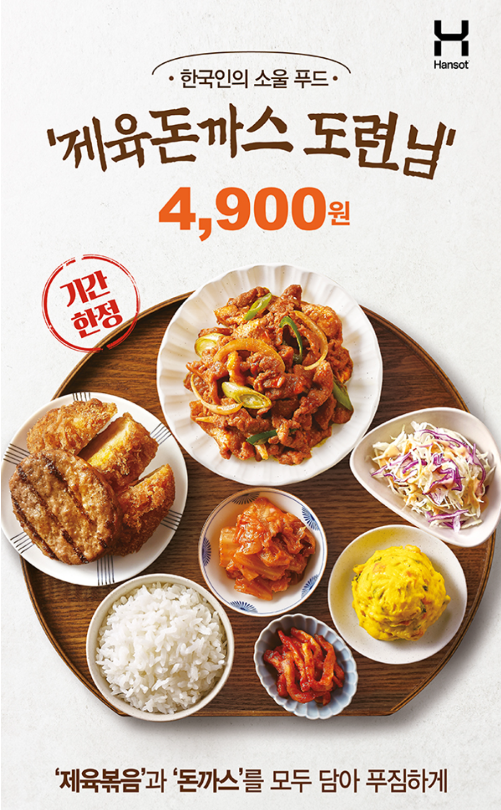 3. 제육돈까스 도련님 - 한솥의 인기 메뉴 돈까스 도련님에 한국인의 소울푸드 매콤 달달 제육볶음을 더해 푸짐한
