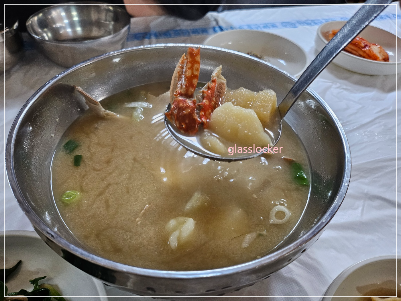 딱새우와 꽃게 등 해산물이 들어가 시원한 된장국이 먼저 나옵니다.
