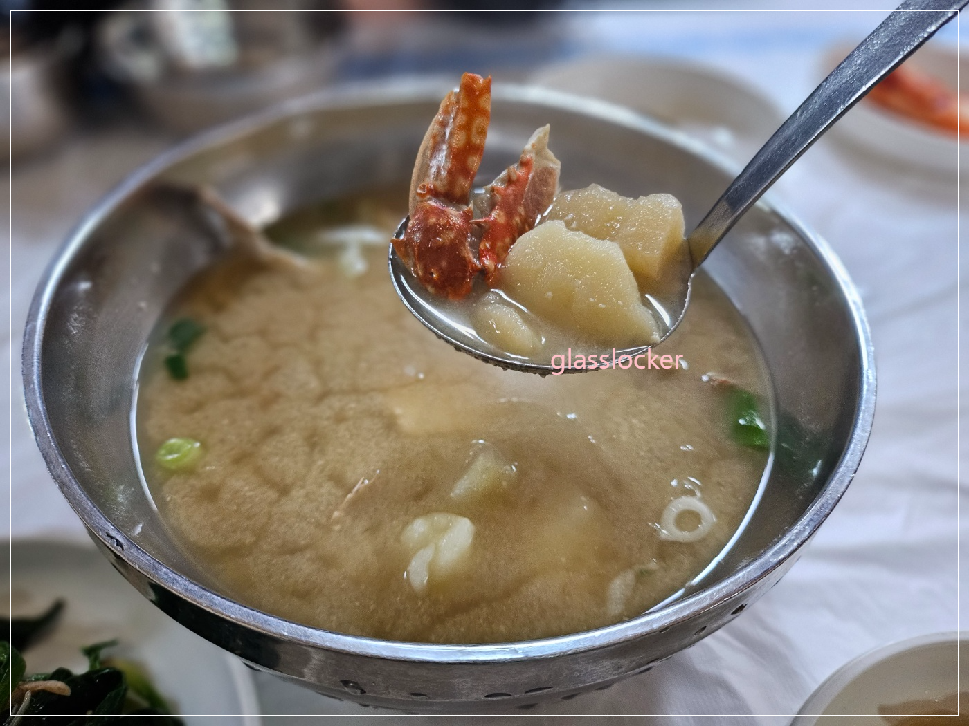딱새우와 꽃게 등 해산물이 들어가 시원한 된장국이 먼저 나옵니다.