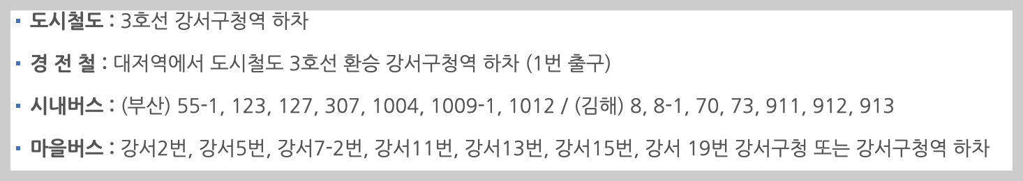- 주차 : 대저생태공원 주차창 이용 가능