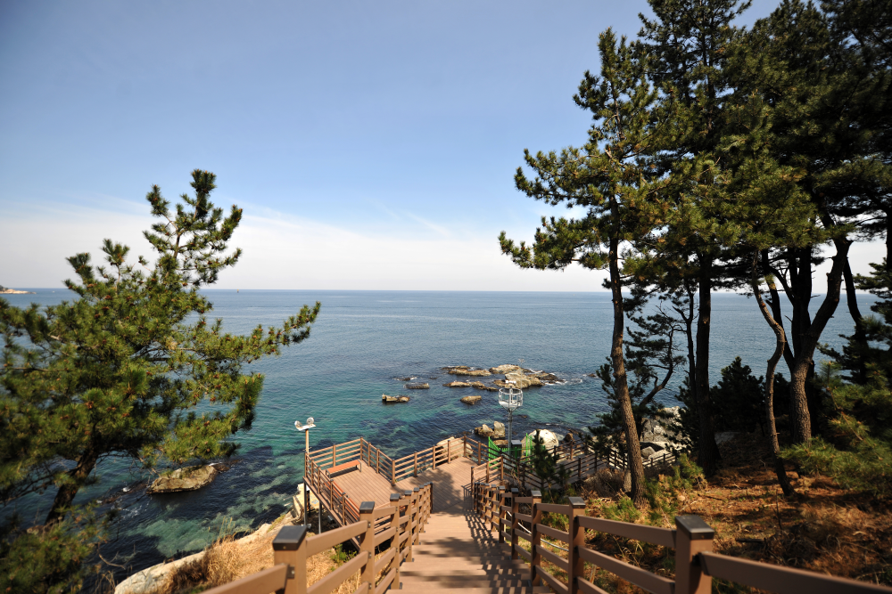 해안 절경이 펼쳐진 산책로 아래에서는 시원한 파도소리와 솔향기를 느낄 수 있습니다. 동해의 맑은 바다를 온몸으로 느끼며 산책할 수 있으며, 사계절 내내 푸른 하늘과 바다를 즐길 수 있습니다. 전망대에서 사진을 찍을 수 있으며, 어린이와 나이드신분들도 편안하게 걸을 수 있는 경사가 낮은 길입니다.