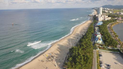 강릉 시내에서 15분이면 도착하는 경포해변은 시원한 바닷내음과 함께 거친 파도소리가 맞이해줍니다. 해변을 따라 가로수가 늘어나며, 카페도 자리해 있어 관광객들에게 편안한 쉼터가 됩니다.