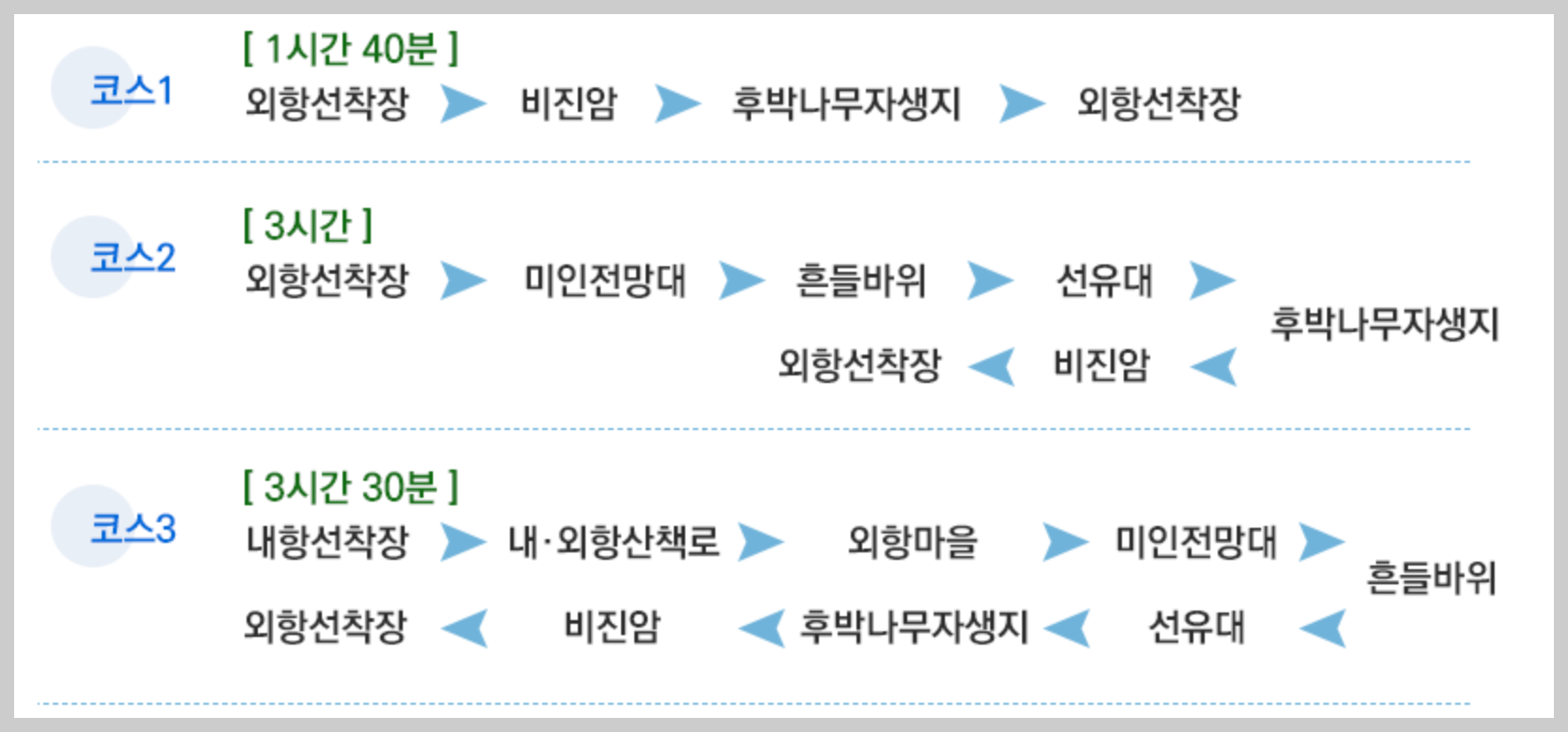 내향 - 숙박을 하는경우, 외향 - 당일치기인 경우, 해수욕장, 트레킹길