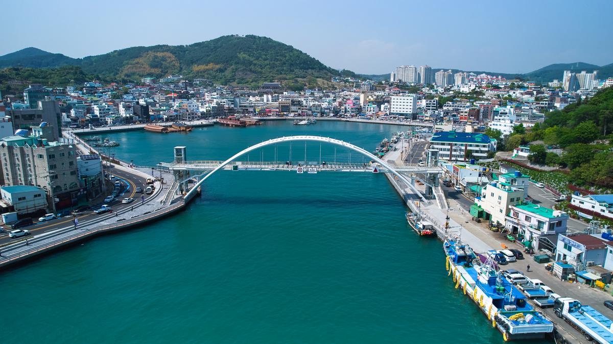강구안의 떠오르는 야간관광 명소인 강구안브릿지는 다리 위에서 내륙과 바다쪽의 경치를 한번에 감상할 수 있는 전망 포인트로 유명합니다.