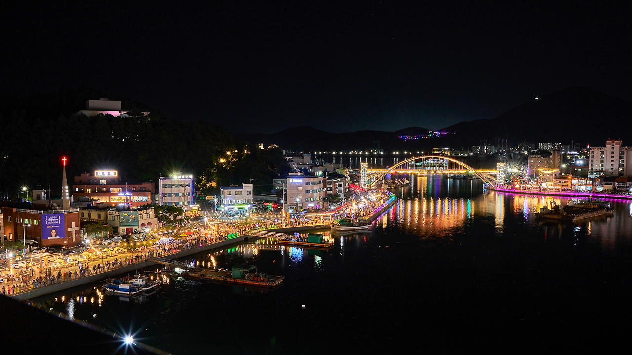 야간에는 보도교에 형형색색의 조명이 켜져 다리 자체로도 훌륭한, 낮과는 또 다른 야경 명소로 변한 강구안의 모습을 볼 수 있습니다. 통영의 관광지와 맛집이 밀집되어 있어 다른 관광지와의 접근성이 좋아 이 곳으로 숙소를 정하는 것도 좋습니다.
