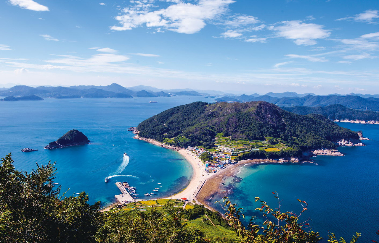 통영시에 속하는 사량도는 윗섬(상도), 아랫섬(하도), 수우도로 이루어져 있습니다. 매년 약 20만 명의 관광객이 등산과 낚시를 즐기러 찾아오는데, 특히 주말에는 약 5,000명 정도가 방문을 하고 있습니다. 윗섬은 등산과 해수욕을, 아랫섬은 주로 낚시를 즐기는 곳으로 알려져 있는데, 각 마을마다 민박집과 음식점이 있고, 소나무 숲과 농작물 밭이 펼쳐져 있어 도보 여행객들에게는 즐거운 여정을 선사합니다. 또한 사량호 도선장에서 내지마을까지 이어지는 도중에는 사량도 유일의 대항해수욕장이 있어 여름철 더위를 식히기에 좋아요. 해안선을 따라 15분 정도 걸어가면 고운 모래사장과 부대시설이 갖춰진 휴양지가 나와서 아이들과 바닷가에서 여유를 즐기기에 좋습니다.
